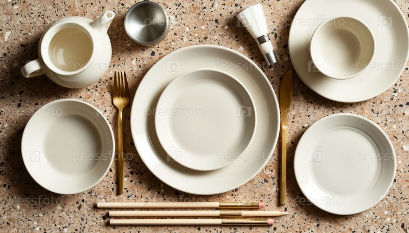 Пластиковая бежевая столовая посуда верхний вид