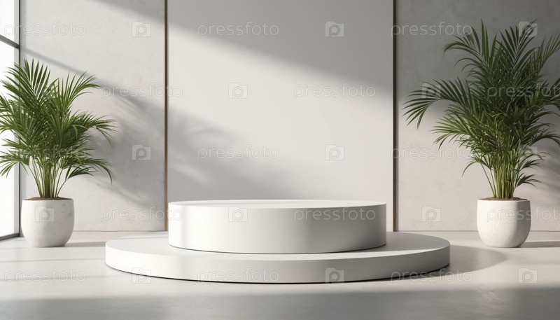 Подиум в белом минималистическом помещении