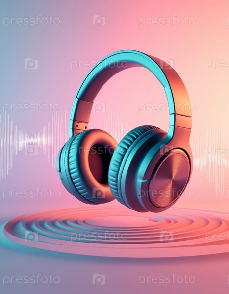 Профессиональные наушники для музыкантов на пастельном фоне, музыкальная обложка