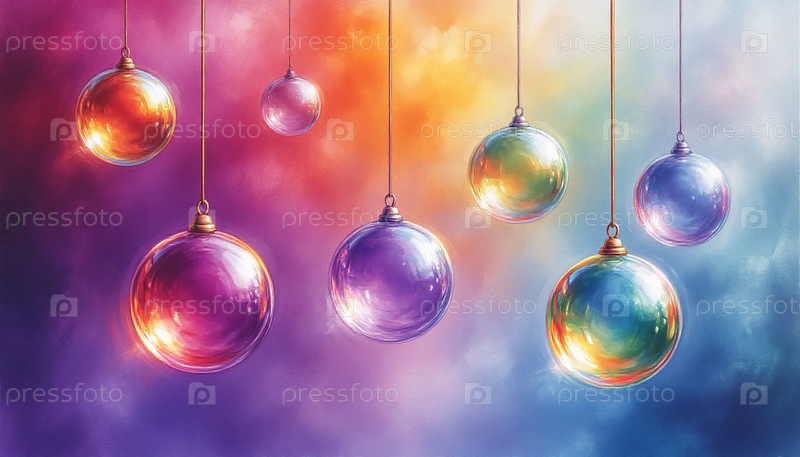Минималистские стеклянные орнаменты на пастельно-фиолетовом фоне