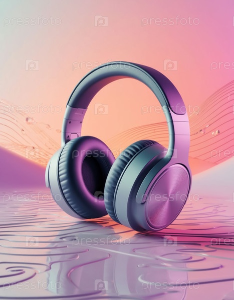 Профессиональные наушники для музыкантов на пастельном фоне, музыкальная обложка