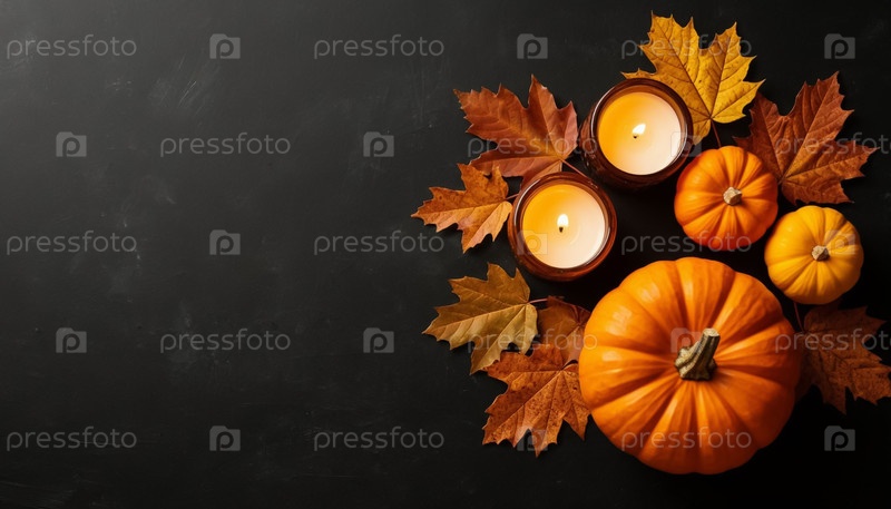 Мини тыквенные свечи на черном фоне