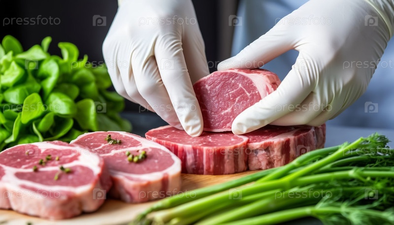 Рука взаимодействует с глютеном и безалкогольным растительным мясом, выращенным искусственно в лаборатории для веганов
