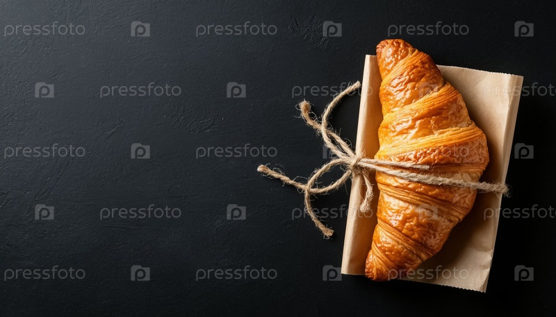 Свежий кроассан на черном фоне