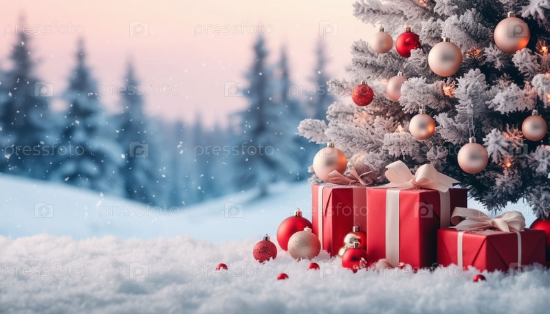 Новый год на заднем плане с украшенной рождественской елкой