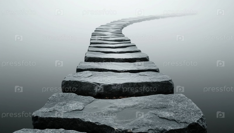 Извилистый каменный путь ведет в туман