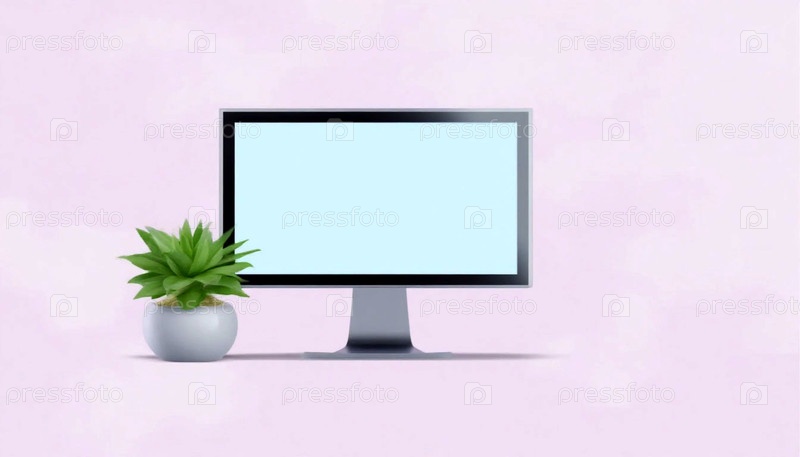 Пустой настольный дисплей в минималистическом рабочем пространстве с зеленью