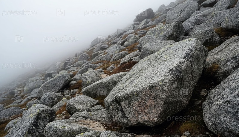 Большие серые скалы в тумане