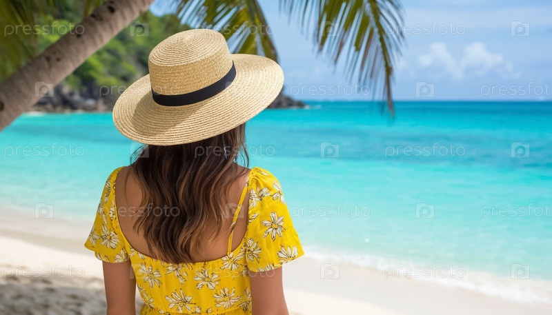 Женщина в соломенной шляпе на пляже