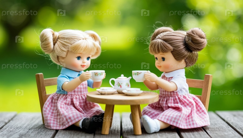 Куклы в саду пьют чай