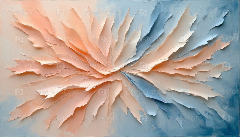 Разорванные бежевые и синие остатки ткани на пастельном минималистском фоне