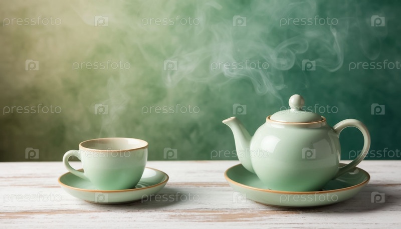Чайник и керамическая пастельная чашка