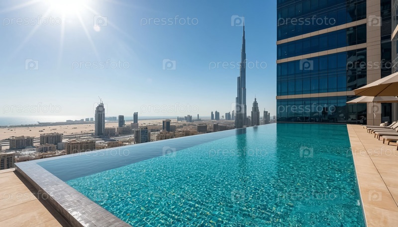 Бесконечный бассейн на крыше небоскреба в дорогом ближневосточном отеле