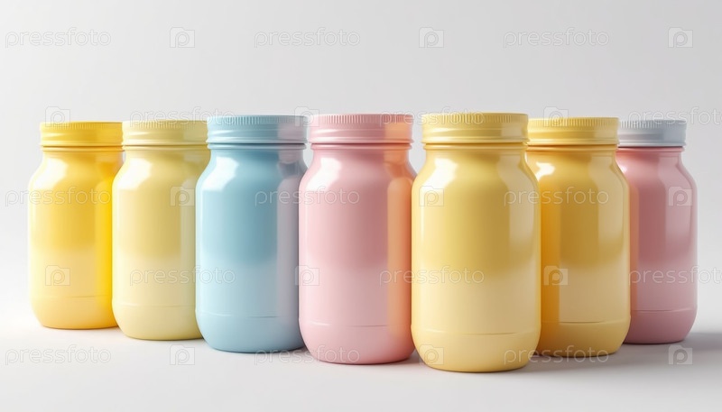Боковой вид Пастельные банки Минималистское расположение Мягкие тени