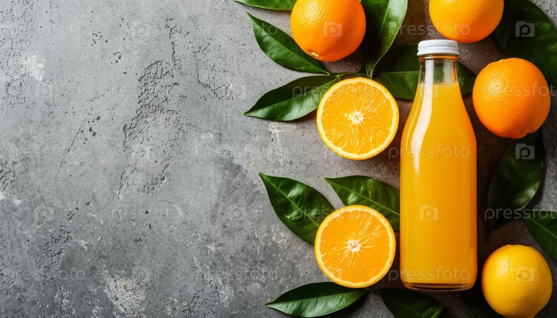 Оранжевый сок на минималистическом фоне с копировальным пространством