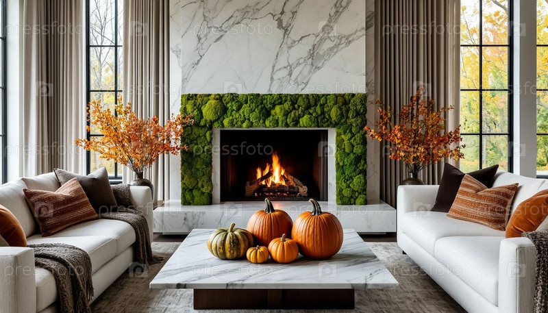 Элегантное жилое пространство с акцентом белого мрамора
