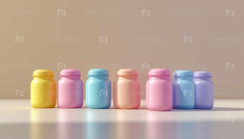 Пастельные пустые банки Линия Желтый Розовый Голубой Белый Фон