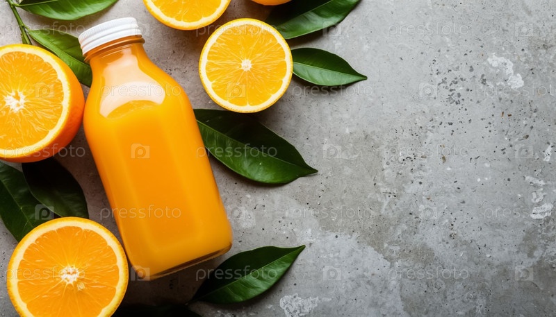 Оранжевый сок на минималистическом фоне с копировальным пространством