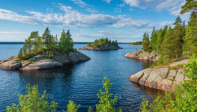 Красивый пейзаж озер и скерей в северной Финляндии и Карелии