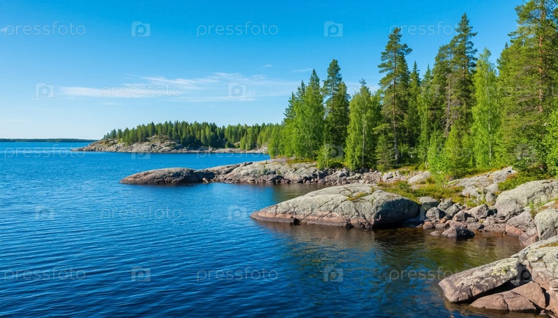 Красивый пейзаж озер и скерей в северной Финляндии и Карелии