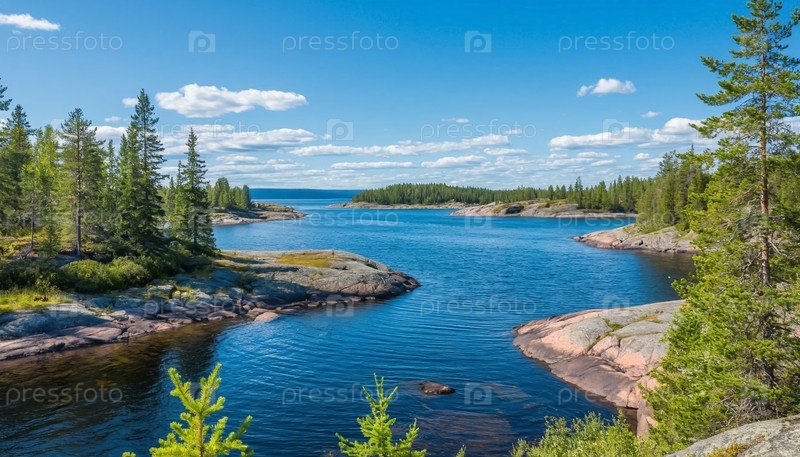 Красивый пейзаж озер и скерей в северной Финляндии и Карелии