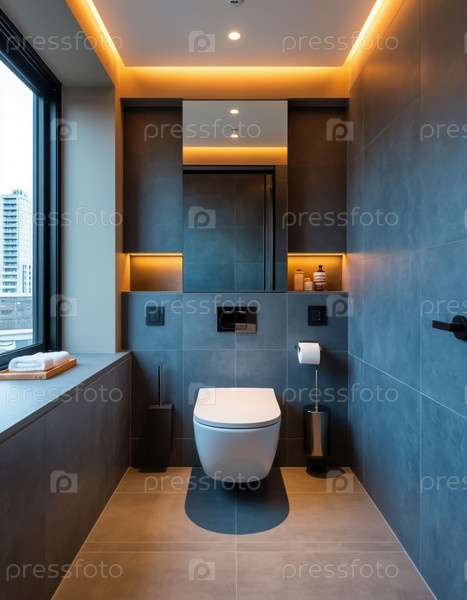 Туалетная комната в современной квартире в японском минималистическом стиле