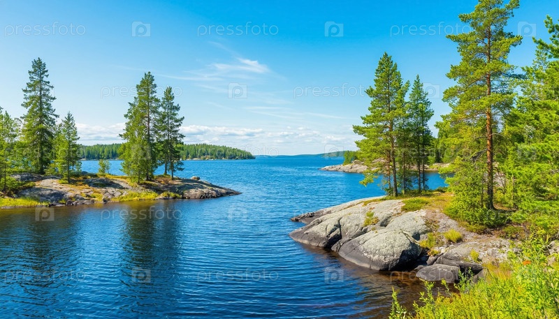 Красивый пейзаж озер и скерей в северной Финляндии и Карелии