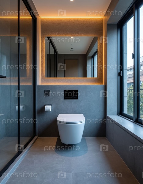 Туалетная комната в современной квартире в японском минималистическом стиле