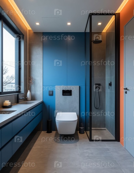 Туалетная комната в современной квартире в японском минималистическом стиле