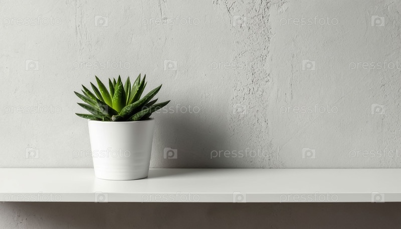 Минималистический декоративный элемент - это полка с растением на стене
