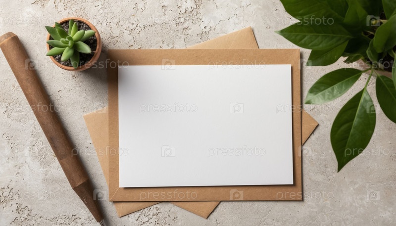 Копированная открытка на столе top view в винтажном стиле