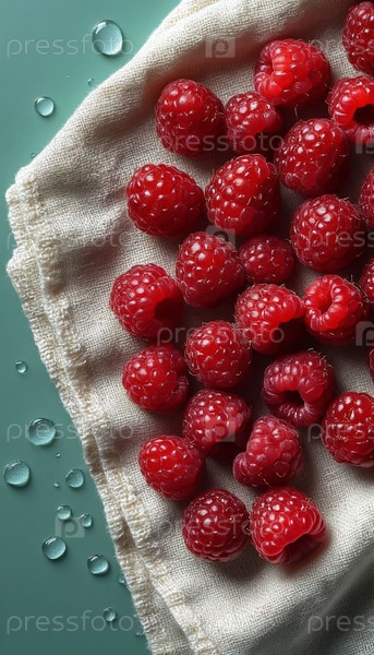 Свежие малины на синей салфетке