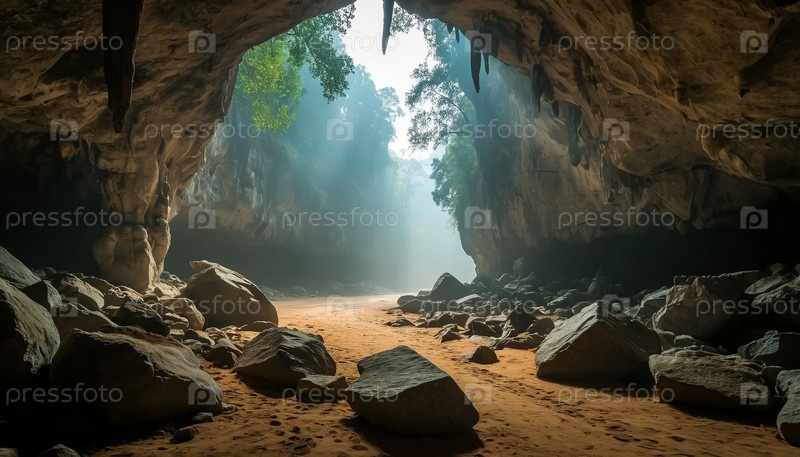 Таинственная пещера с проникающим внутрь светом