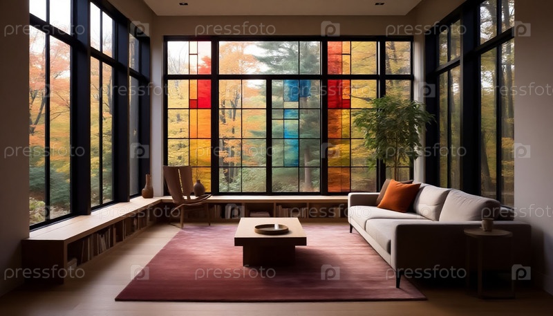 Красочный витраж минималистский современный интерьер