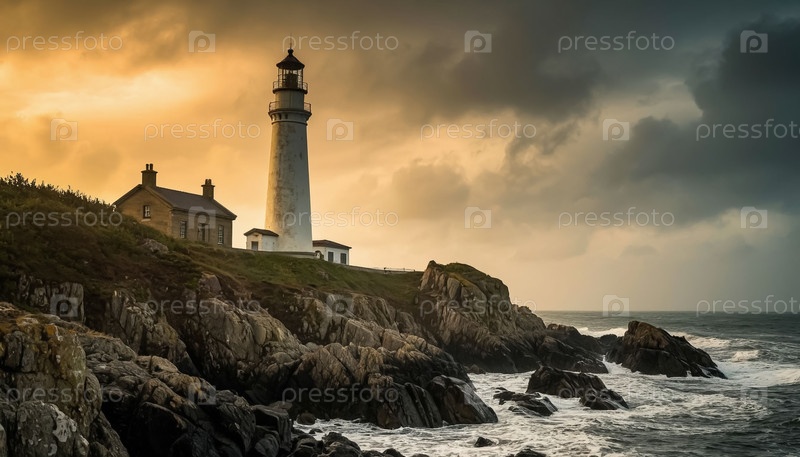 Морской маяк на вершине скалистого берега на побережье океана
