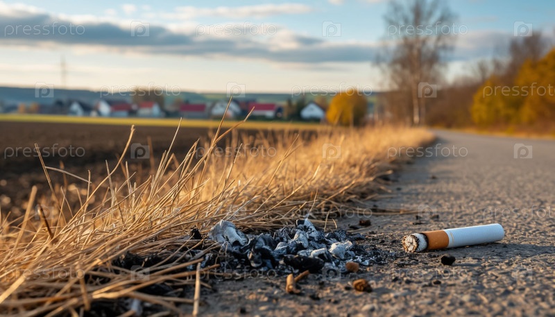 Оставленная сигарета рядом с огнем и дымящаяся сухая трава - опасность пожара