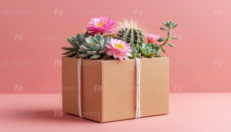 Экологически чистая коробка Kraft с цветами кактуса и соккулентами