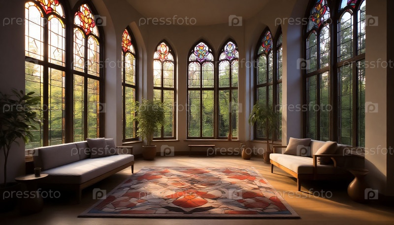 Красочный витраж минималистский современный интерьер