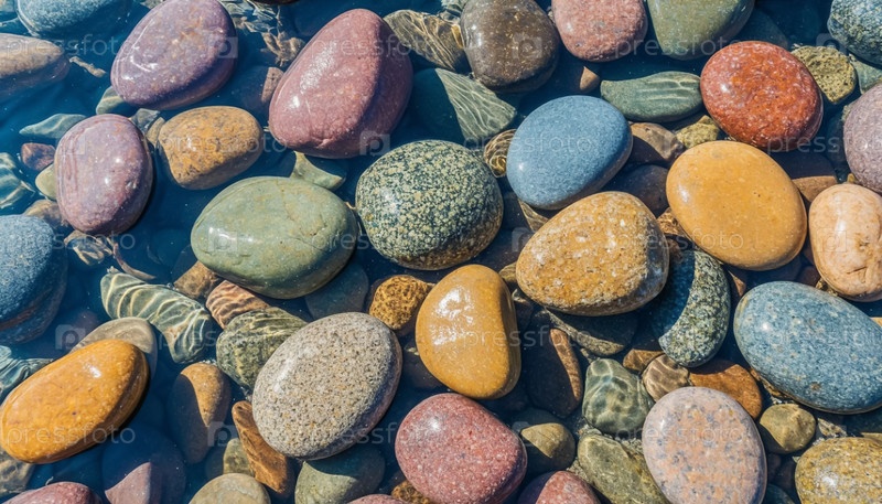 Радужные гладкие гальки под чистой водой top view