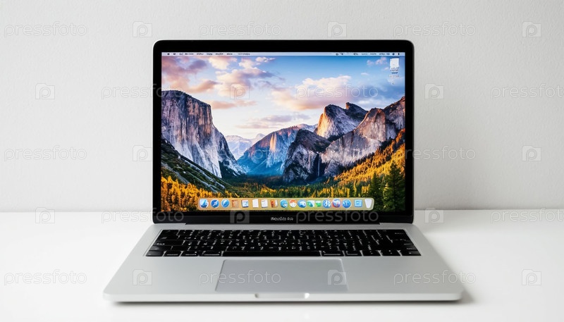 Ноутбук с абстрактным экранщиком на мониторе на минималистическом белом фоне