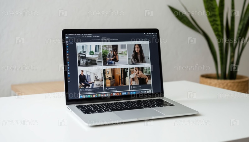 Ноутбук с рабочей страницей на мониторе на минималистическом белом фоне