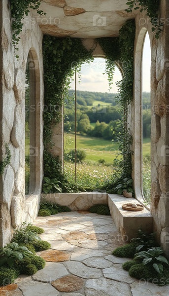 Естественный камень и мох Комната осенний уют современность