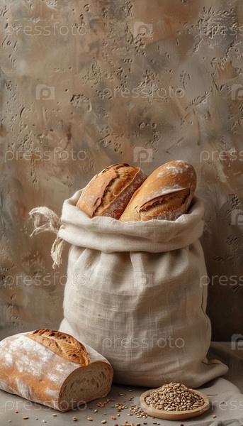 Леный хлебный пакет с зерновым лепестком на песчаном фоне