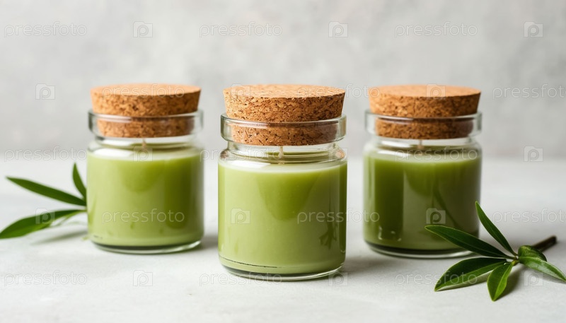 Естественные зеленые свечи в банках с крышками