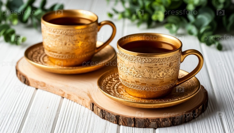 Две экологически чистые чайные чашки из березовой коры с золотым декором