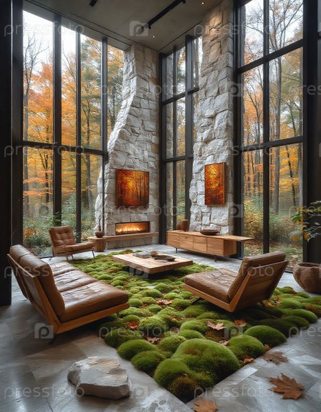 Белый камень и мох Внутренняя осенняя атмосфера