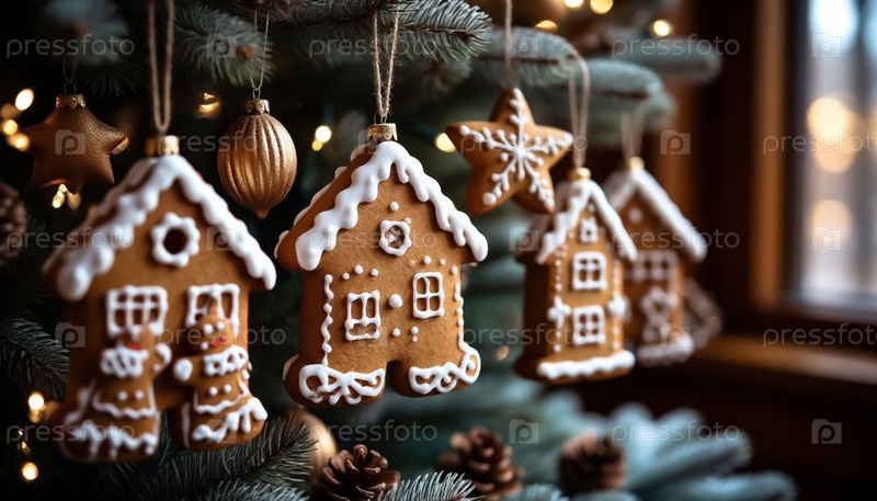 Праздничные декорации печенья с имбирным хлебом закрывают праздник