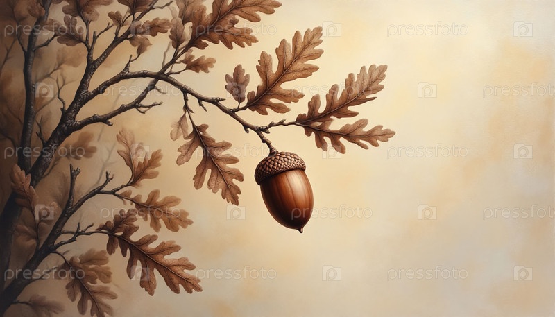 Минималистская дубовая ветвь с одиночным желудочком кремовый градиент