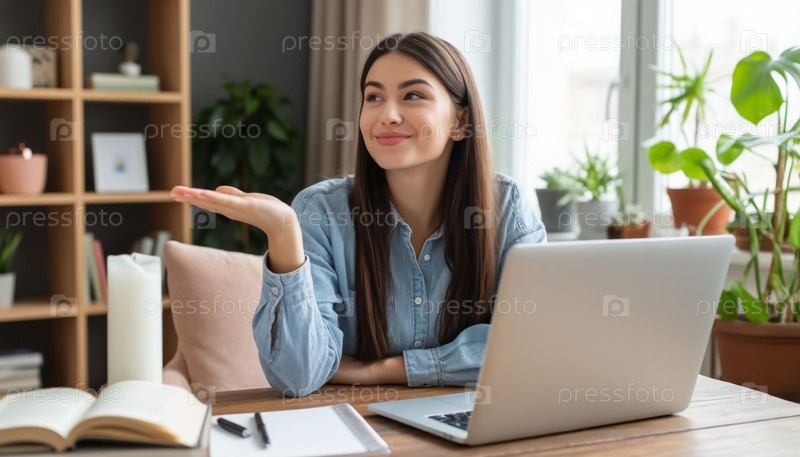 Счастливая молодая девушка или студент сидит перед ноутбуком Удаленная связь, работа или учеба через Интернет