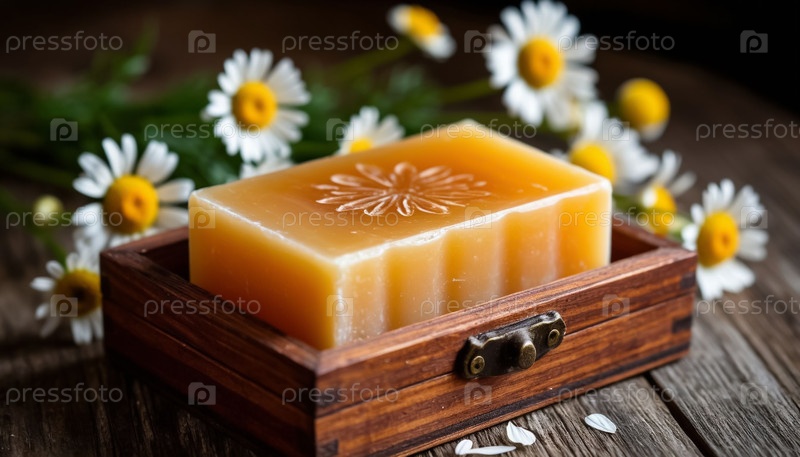 Естественное мыло из ромашки в подарочной деревянной коробке